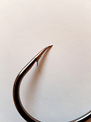 Er dreht sich beim Anbiß in das Fischmaul. Auch Fische mit harten Partien im Maul sind kein Probelm. Beim z. B. Seehechtangeln ist dieser Haken unschlagbar.