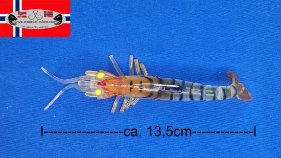 Die Garnele ist die natürliche Nahrung der Meeresfische also auch einer der besten Köder die man bekommen kann. Naturgetreue Darstellung und ein natürliches Spiel im Wasser machen unsere Garnele für die Räuber der Meere unwiderstehlich.