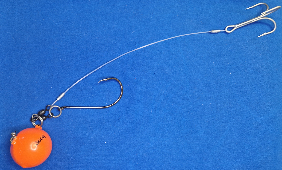 200g, 300g, 400g und 500g Trailerball bleifrei, Rosco Sprengringe und Wirbel 1,2mm deutsche Markenschnur mit 62kg Tragkraft, Big Game Quetschhülsen und einen Starpoint FX 11/0 Roundpoint Einzelhaken einen 8/0 VMC Drilling