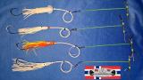 Alle mit selbstleuchtenden Lockködern versehen und in 1mm IGFA 61kg Schnur gefertigt.