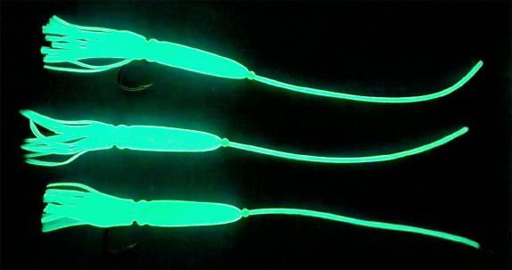 Rosco Cranewirbel, Deutscher Markenschnur 1,2mm, Leuchtschlauch, Leuchtoktopoden 19cm, Leuchtperlen und Quetschhülsen aus dem BigGame Bereich. Ein Stückchen Schrumpfschlauch als Bißschutz habe ich auch noch im Gepäck.
