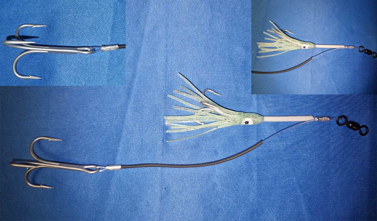 Verbaut werden hier VMC Drillinge, Rosco Wirbel und Sprengringe und 1,00mm Schnur.