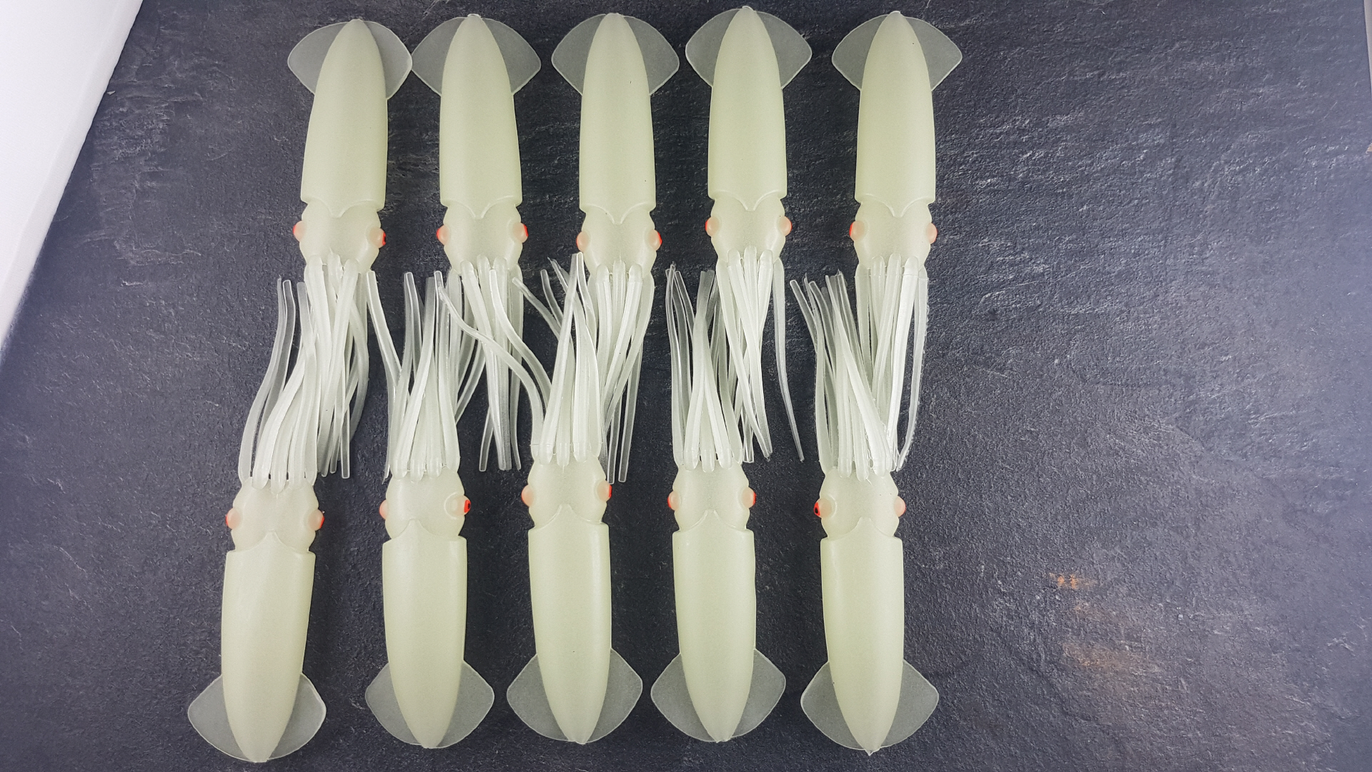 Fluo Squid der extra Klasse Top fängig Farbe: Super Fluo hohe und sehr lange Leuchtkraft Super Weich Länge ca.12 cm Eigengewicht ca.8g Mit Lochdurchführung zum besseren Einführen der Schnur. Der Ideale Köder um Meeresräuber wie Leng, Lumb, Dorsch, Heilbutt, Seehecht, Seeteufel usw. zu überlisten, seht Euch das Bild an. Die Teile schlagen jeden anderen Köder, zusammen mit dem Leuchtschlauch ein Garant für aussergewöhnlich viele und Gute Fische. Super Spiel
