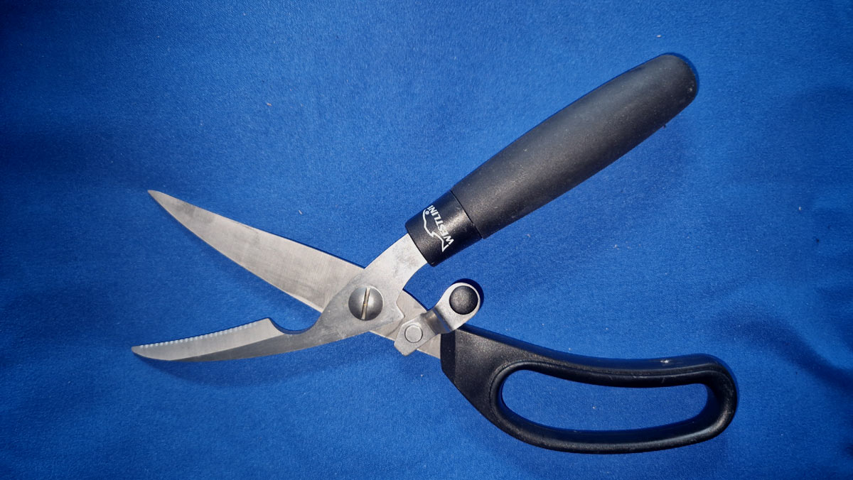 Richtig scharfe Profi Filetierschere, ideales Werkzeug um z.B. bei Plattfischen schnell und einfach Kopf und Flossen abzutrennen.
